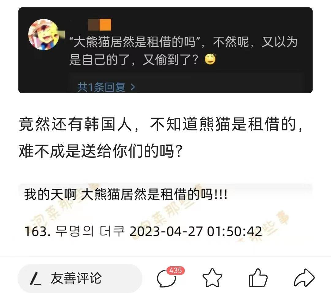 让国内网友惊奇的是韩国人甚至韩国官方的电视台居然不知道大熊猫是中国国宝,更不知道熊猫是从中国租界过来的,难不成以为熊猫是中国的吗?