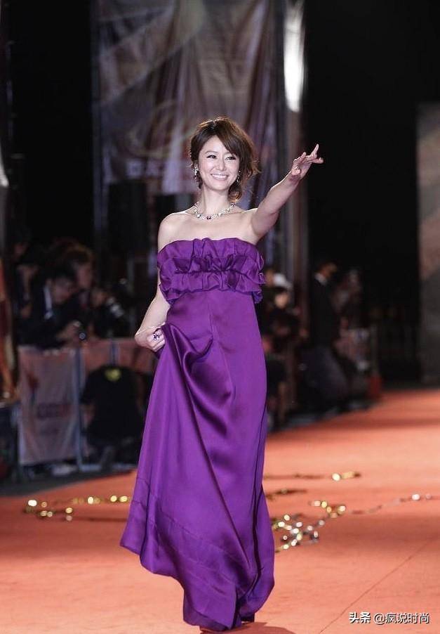 这件紫色的抹胸裙,也是非常有亮点的。尤其是在抹胸的位置,选择了褶皱的花苞边造型。层层褶皱的花苞边,营造出一种更加精致玲珑的美感。不过林心如身材本就不是太饱满,甚至说有些干瘪。再加上这种褶皱的造型,完全看不出身体的凹凸线条呀,简直没有女性的性感时髦范。看起来有种像穿着宽松睡袍的感觉!