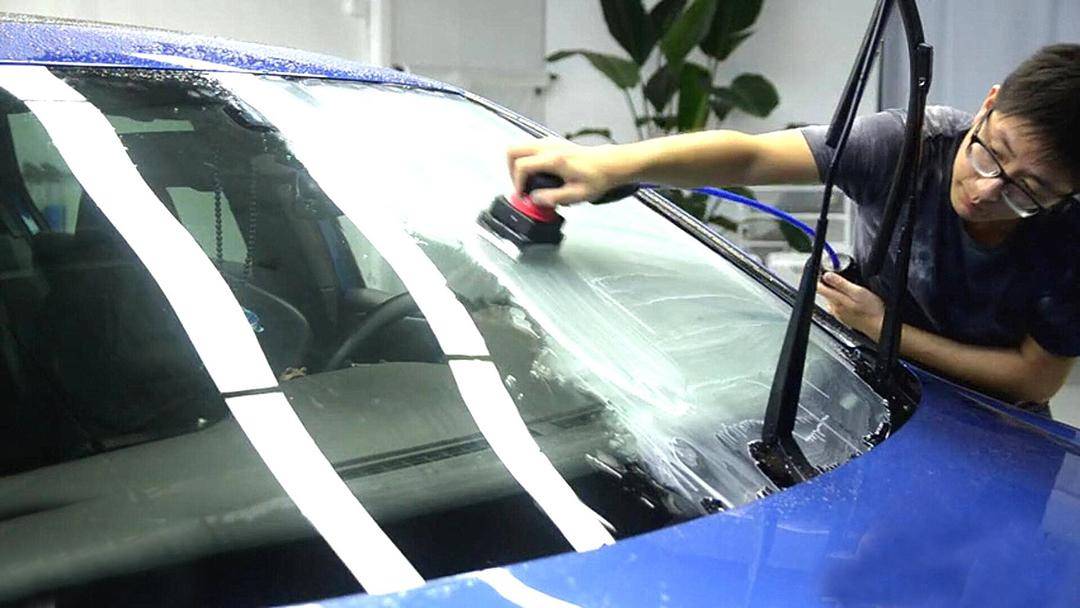 那么我们应该怎样去清理这种油脂呢?光靠清水来清洗是没有用的,应该用一种叫做玻璃清洗剂的东西,它是专门用来清理汽车玻璃的,把它喷在上面,然后用海绵或者抹布轻轻擦拭一下就可以了。